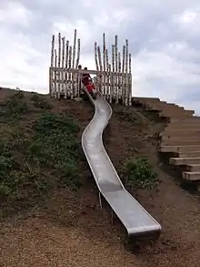 Terra Nova Adventure Park is located in the northwest corner of Lulu Island, at the west end of River Road in the Thompson area of Richmond.[1] Built adjacent to the Fraser River and former farm fields,[2] the location of the park plays a key role in promoting outdoor play and appreciation for nature. The Terra Nova landscape includes "intertidal foreshore, dykes, remnant sloughs, and past and present agricultural [and wetland] use"[3] such as the community garden.