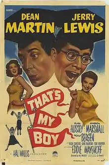 That's My Boy is a 1951 American semi-musical comedy film directed by Hal Walker and starring the comedy team of Martin and Lewis and marked the first time that Dean Martin and Jerry Lewis had "roles" as opposed to previous efforts in which they played an extension of their nightclub act. It was released on May 31, 1951 by Paramount Pictures.
