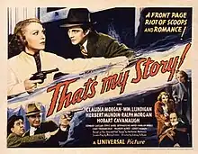 That's My Story is a 1937 American drama film directed by Sidney Salkow from a screenplay by Barry Trivers. The film stars William Lundigan, Claudia Morgan, and Herbert Mundin.