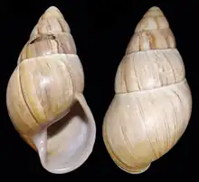 | apertural and abapertural view of the shell of Thaumastus flori Shell height 65.0 mm. | |