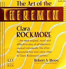 The Art of the Theremin is the first official album by theremin virtuoso Clara Rockmore, and the only one released in her lifetime.[2][3] It was produced by Robert Moog and his first wife, Shirleigh Moog, and was released as an LP in 1977 by Delos International Records. As with most of her live performances, she was accompanied by her older sister, Nadia Reisenberg, on piano.[4] The 1977 Delos LP and 1981 Japanese Delos LP release were entitled Theremin. The 1987 Delos CD was titled The Art of the Theremin.