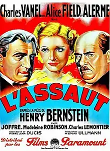 The Assault (French: L'assaut) is a 1936 French drama film directed by Pierre-Jean Ducis and starring Charles Vanel, Alice Field and Madeleine Robinson.[1] It is based on the 1912 play of the same title by Henri Bernstein.