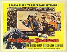 The Black Dakotas is a 1954 American Technicolor Western spy film directed by Ray Nazarro and produced by Columbia Pictures. Set during the American Civil War and filmed at the Iverson Movie Ranch, the film stars Gary Merrill as a cold-blooded secret agent using the war for his own ends. It also stars Wanda Hendrix and John Bromfield. The film features The Lone Ranger television series Jay Silverheels and Clayton Moore in separate roles as well as Richard Webb of Captain Midnight.
