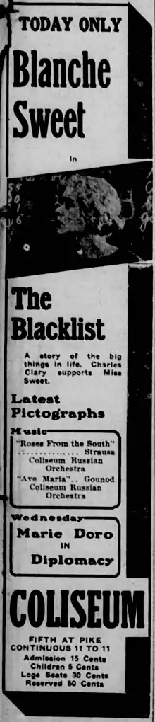 The Blacklist is a 1916 American silent drama film directed by William C. deMille and written by Marion Fairfax and William C. deMille. The film stars Blanche Sweet, Charles Clary, Ernest Joy, William Elmer, Horace B. Carpenter, and Lucien Littlefield. The film was released on February 20, 1916, by Paramount Pictures.[1][2]