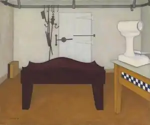The Block is a 1954 painting by Australian artist John Brack. The painting depicts the interior of an empty butcher's shop, including the eponymous butcher's block.[1] It is one of a series of paintings—including The Barber's Shop (1952), The Fish Shop (1955) and Men's Wear (1955)—of small high street businesses.[2]