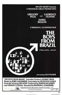 The Boys from Brazil is a 1978 British-American science fiction thriller film directed by Franklin J. Schaffner. It stars Gregory Peck and Laurence Olivier, and features James Mason, Lilli Palmer, Uta Hagen, Anne Meara, Denholm Elliott, and Steve Guttenberg in supporting roles. The film is a British-American co-production, based on the 1976 novel of the same title by Ira Levin. It was nominated for three Academy Awards.