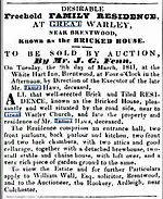Advertisement for the sale of Bricked House (now the Kilns Hotel) in 1841