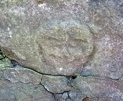 The Grannie Stane or Stone lies a short distance away from the Chapel Well. This large stone is either simply a glacial erratic left behind from the Ice Age or is the last remaining stone of a stone circle - others were removed, by blasting in 1897 and 1899, after the Irvine weir was constructed in 1895, but popular protests saved this remaining stone.[13] The positioning of the chapel and well near to a stone circle would fit in with the well known practice of supplanting pagan sites with Christian sites.
