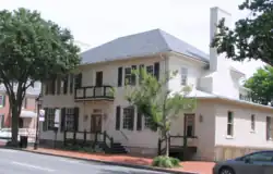 The Chimneys is a historic house located in Fredericksburg, Virginia. The house was constructed around 1771–1773. The house is named because of the stone chimneys at each end.[3] The Georgian home was added to the National Register of Historic Places in April 1975. Of note are the interior decorative woodwork in the moldings, millwork, paneling indicative of building styles of the period. The decorative carving on the mantelpiece as well as on the door and window frames is particularly significant.[1][4][5]