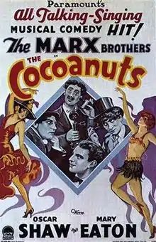 The Cocoanuts is a 1929 pre-Code musical comedy film starring the Marx Brothers (Groucho, Harpo, Chico, and Zeppo). Produced for Paramount Pictures by Walter Wanger, who is not credited, the film also stars Mary Eaton, Oscar Shaw, Margaret Dumont and Kay Francis. It was the first sound film to credit more than one director (Robert Florey and Joseph Santley), and was adapted to the screen by Morrie Ryskind from the George S. Kaufman Broadway musical play. Five of the film's tunes were composed by Irving Berlin, including "When My Dreams Come True", sung by Oscar Shaw and Mary Eaton.