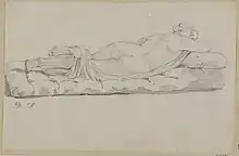 David, in accordance with the revolutionary narrative derived from Robespierre, capitalizes on the innocence and youthfulness of Bara, suppressing Bara's masculinity and illuminating his effeminate figure.[3] The painting remains unfinished, but the attention to detail in the shading and musculature suggests Bara was intended to be nude. Bara's pose, recalling both antiquity, such as the Hermaphrodite by Bernini, and the innovations of David's contemporaries, such as Girodet's The Sleep of Endymion, further emphasizes his curved hips, elongated torso, his figure's flowing hair, and absence of genitalia.[4]