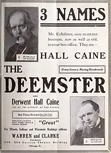 The Deemster is a 1917 American drama silent film, released by Arrow Film Corporation, directed by Howell Hansel, starring Derwent Hall Caine and Marian Swayne.[1]