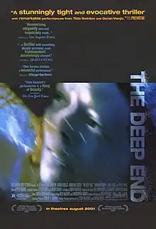 The Deep End is a 2001 American thriller film written and directed by David Siegel and Scott McGehee.[1] It stars Tilda Swinton, Goran Visnjic, Jonathan Tucker and Josh Lucas and was released by Fox Searchlight Pictures. The film was very loosely adapted from the novel The Blank Wall by Elisabeth Sanxay Holding (filmed before by Max Ophüls as The Reckless Moment).[2] The film premiered in competition at the Sundance Film Festival where English cinematographer Giles Nuttgens won the Best Cinematography award.[3]