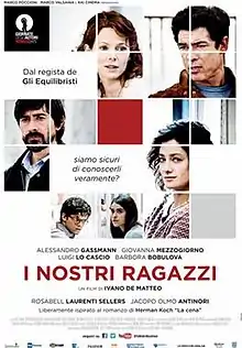 The Dinner (Italian: I nostri ragazzi) is a 2014 Italian drama film directed by Ivano De Matteo. It is loosely inspired by the novel of the same name by Herman Koch.[1][2][3] It was screened in the Venice Days section at the 71st Venice International Film Festival, in which it won the Europa Cinemas Label as Best European Film.[4]