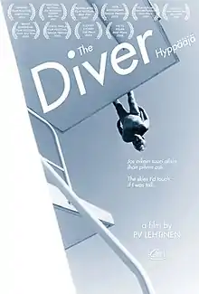 The Diver (Finnish: Hyppääjä) is a 2001 Finnish short film directed by PV Lehtinen. It is an ode to diving and the aesthetics of movement. The film focuses on Helge Wasenius (born 1927), the grand old man of diving, who competed in two Olympic Games and performed clown dives.[1] Lehtinen has said that the protagonist, Helge Wasenius, was his neighbour and childhood hero. When he started planning the film, an image of Wasenius hanging by his feet from the ten-meter diving tower of Helsinki Swimming Stadium was embedded in his head. The diving sequences in the film have been compared to Leni Riefenstahl. Lehtinen has said he was inspired by Herb Ritts’ photographs of divers more than Riefensthal.[2]