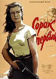 The Forty-First (Russian: Сорок первый, romanized: Sorok pervyy) is a 1956 Soviet film based on the eponymous novel by Boris Lavrenyov. It was directed by Grigori Chukhrai and starred Izolda Izvitskaya and Oleg Strizhenov. The film, a remake of the 1927 movie with the same name, is set during the Russian Civil War and tells the story of a tragic romance between a female sniper of the Red Army and an officer of the White Army.[1]