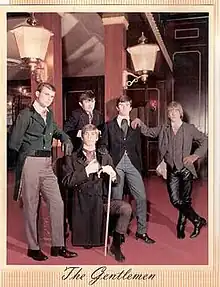 The Gentlemen formed in 1964 and were from Oak Cliff, a section of Dallas, Texas.[1][2] The band went through several lineup changes, but the band's musical direction was largely guided by guitarist Seab Meador, who spent several years in the band and was recognized by those around him as a genius on his instrument.[1][3] Meador's tastes gravitated towards bands such as the Rolling Stones, the Animals, the Kinks, and the Yardbirds, whose lead guitarist, Jeff Beck greatly influenced his playing.[1] Consequently, the band's sound owed more to the blues-based approach of the Rolling Stones and the Animals than the pop ballads of the Beatles and Dave Clark Five.[3] The band's original bass player, Jimmy Randall announced his departure and went on to play with L.A.-based Jo Jo Gunn.[1][3] Lonnie Taylor came in, and eventually succeeded him, but for a transitional period the band had two bass players.[1][3]