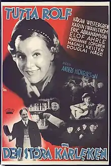 The Great Love (Swedish: Den stora kärleken) is a 1938 Swedish comedy film directed by Anders Henrikson and starring Tutta Rolf, Håkan Westergren and Karin Swanström.[1] It was shot at the Råsunda Studios in Stockholm. The film's sets were designed by the art director Arne Åkermark.
