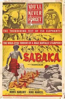 Sabaka (originally to be called Gunga Ram[3]) is a 1953 American adventure film written, directed and co-produced by Frank Ferrin, filmed partially on location in India. The film also starred Victor Jory, Boris Karloff, Peter Coe, Reginald Denny, June Foray and Jay Novello.[4]