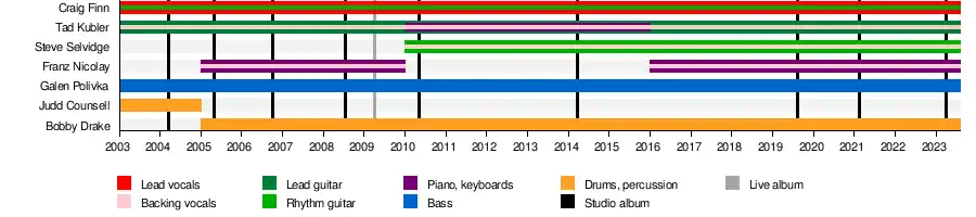 In 2011, Selvidge was added to the band's official lineup. Finn said: "We added [Selvidge], we are a five-piece. We are rolling without keys right now. We did some shows without keys and we really liked it. It sort of opened things up for us. We have two pretty amazing guitar players in our band, and it's really fun to have that space and spread out. They can sort of work against each other/with each other. Steve's been a great addition to the band. We came across Steve many years ago and we always kind of said, 'Man, if things open up and we can get him in the band, we want him.' [...] Steve, lives in Memphis. So wherever we record this time, someone's not going to be at home."[1]