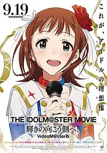- ↑ Japanese: THE IDOLM@STER MOVIE 輝きの向こう側へ!, Hepburn: The Idolmaster Movie: Kagayaki no Mukōgawa e!, lit. 'The Idolmaster Movie: To the Glittering Other Side!'[5] or 'The Idolmaster Movie: To the Glittering Side!'[6]