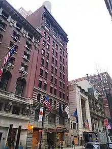 The Iroquois Hotel New York is located at 49 West 44th Street between Fifth Avenue and Sixth Avenue in the Midtown Manhattan neighborhood of New York City. It is one of six hotels owned by Shimmie Horn and Gerald Barad under the Triumph Hotels brand.[1][2] The hotel is part of Small Luxury Hotels of the World,[3] a European-based referral service that sets standards for furnishings and service.[2]