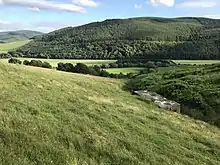 The Kirna is due south of Kirnie Law Reservoir which was built to provide hydro-electric power for Tweedvale Mill and Tweedholm Mill in Walkerburn, owned by Henry Ballantyne & Sons, Ltd. The project was conceived of and designed by Boving & Co. Ltd. (hydraulic engineers) and became operational in 1922.[76][77] This was the first working hydro-electric power scheme in the country.[78] The reservoir continued in use until around 1950.[79]