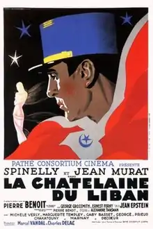 The Lady of Lebanon (French: La Châtelaine du Liban) is a 1934 French thriller film directed by Jean Epstein, starring Andrée Spinelly and Jean Murat.[1] The narrative is set in Lebanon and follows a web of espionage with clashes between the French and British secret services, with a beautiful young woman at the centre. The film is based on the 1924 novel The Lady of Lebanon by Pierre Benoit. Filming took place between July and December 1933 in Lebanon, France, Egypt, Palestine and Syria. It premiered on 2 February 1934.[2]