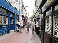 Unlike many of the other lanes in this oldest part of Brighton, Dukes Lane, which leads off of Duke Street, was a "reproduction street" constructed in 1979 and is relatively new.[2]