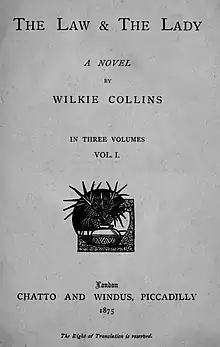 The Law and the Lady is a detective story, published in 1875 by Wilkie Collins. It is not quite as sensational in style as The Moonstone and The Woman in White.
