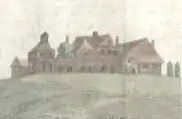 The Leasowes c. 1776. This engraving is of the small mansion completed in 1776 by Edward Horne who demolished Shenstone's house and built his mansion on the same site.[4]