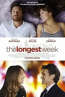 The Longest Week is a 2014 American comedy-drama film written and directed by Peter Glanz. The film stars Jason Bateman, Olivia Wilde and Billy Crudup in the lead roles. It was produced by Uday Chopra, along with Neda Armian.[2] It is the first project of Yash Raj Film's subsidiary Hollywood production house YRF Entertainment.[3] The film received generally negative reviews from critics.