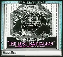 The Lost Battalion is a 1919 American silent war film about units of the 77th Infantry Division (the "Lost Battalion") penetrating deep into the Argonne Forest of France during World War I. The film was directed by Burton L. King and features Major Charles W. Whittlesey and a number of actual soldiers from the 77th who portrayed themselves in the film. It was released July 2, 1919 in North America. The film was remade in 2001 by Russell Mulcahy.