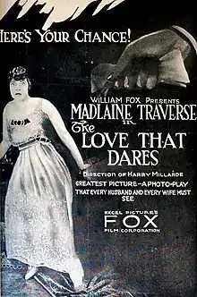 The Love That Dares is a lost[1] 1919 silent film drama directed by Harry Millarde and starring Madlaine Traverse. It was produced and distributed by Fox Film Corporation.[2]