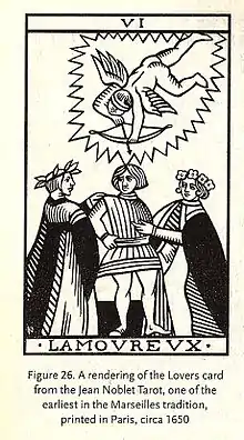 The Lovers (VI) is the sixth trump or Major Arcana card in most traditional Tarot decks. It is used in game playing as well as in divination.