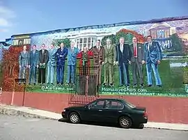 The Mama Ayesha's Restaurant Presidential Mural is a 2009 large mural in Washington, D.C. featuring eleven American Presidents, starting with Dwight D. Eisenhower and ending with Barack Obama. Created by El Salvador-born artist Karla Rodas (aka Karlisima), the mural was funded by the D.C. Commission on the Arts and Humanities.[1] It has been described by locals as being DC's "largest postcard."[2]