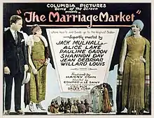 The Marriage Market is a 1923 American silent romantic comedy film directed by Edward LeSaint and starring Pauline Garon, Jack Mulhall, and Alice Lake. The film was released by the CBC Film Sales Corporation, which would later become Columbia Pictures.[1]