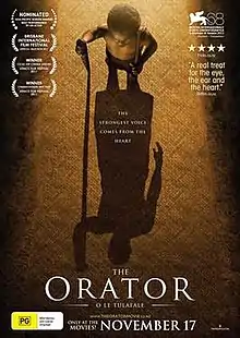 The Orator (Samoan: O Le Tulafale) is a 2011 Samoan and New Zealand film written and directed by Tusi Tamasese. It is the first ever Samoan feature film, "entirely shot in Samoa, in the Samoan language, with a Samoan cast and story".[2] The film was selected as the New Zealand entry for the Best Foreign Language Film at the 84th Academy Awards,[3] but it did not make the final shortlist.[4] It is the first time New Zealand has submitted a film in this category.[5][6]