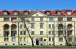 Days after Warsaw's surrender, German leaflets were hung on the walls of buildings, promising Poles the protection of the German state. A section of the leaflets were devoted to Jews, guaranteeing that their rights, property and lives would be secure. Decrees applying to Jews were posted around the city.[9] From 1 December Jews over the age of 12 had to wear a blue Star of David on a white armband; they were given five days to comply.[10][lower-alpha 2] They had to hand real estate and valuables over to German officials. Jewish families were permitted to own just 2,000 zlotys; the rest had to be deposited in a bank in a blocked account.[9] Very few people complied. Szpilman's family—he was living with his parents, his brother Henryk, and his sisters Regina and Halina—hid their money in the window frame, an expensive gold watch under a cupboard, and the watch's chain beneath the fingerboard of Szpilman's father's violin.[12]