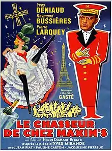The Porter from Maxim's (French: Le Chasseur de chez Maxim's) is a 1953 French comedy film directed by Henri Diamant-Berger and starring Yves Deniaud, Pierre Larquey and Raymond Bussières. It is based on the 1923 play of the same name which has been made into several film adaptations.[1] It was shot at the Neuilly Studios and on location in Paris. The film's sets were designed by the art director Roger Briaucourt.