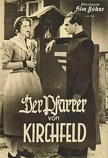 The Priest from Kirchfeld (German: Der Pfarrer von Kirchfeld) is a 1937 Austrian film directed by Jacob Fleck and Luise Fleck and starring Hans Jaray, Hansi Stork and Ludwig Stössel.[1] It is based on the play Der Pfarrer von Kirchfeld by Ludwig Anzengruber.