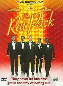 The Rat Pack is a 1998 American HBO made-for-television drama film about the Rat Pack. The movie stars Ray Liotta as Frank Sinatra, Joe Mantegna as Dean Martin, Don Cheadle as Sammy Davis, Jr., and Angus Macfadyen as Peter Lawford. Despite his membership in the Pack, Joey Bishop (played by Bobby Slayton) is given minimal screen time, while John F. Kennedy (played by William L. Petersen), depicted as an on-and-off friend of Sinatra's, is given a more central role.