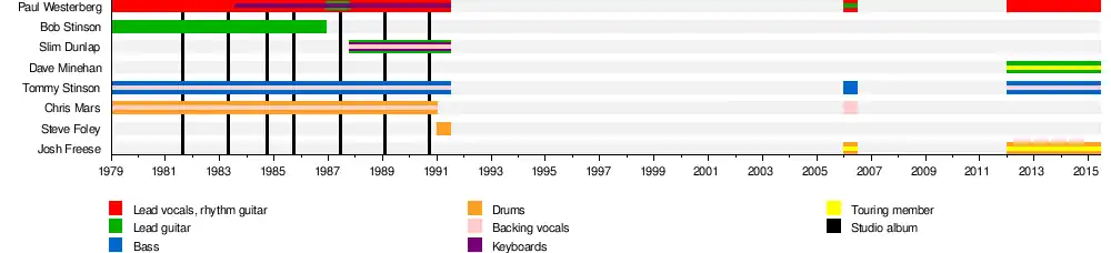 - Tommy Stinson – bass guitar, backing vocals (1979–1991, 2006, 2012–2015)