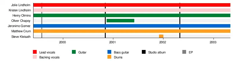 - Jolie Lindholm – vocals, xylophone (1999–2003)