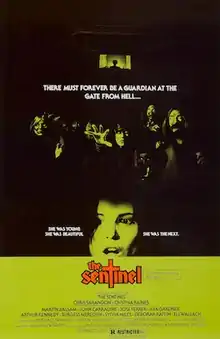 The Sentinel is a 1977 American supernatural horror film directed by Michael Winner, and starring Cristina Raines, Chris Sarandon, Ava Gardner, Burgess Meredith, Sylvia Miles and Eli Wallach. The plot focuses on a young model who moves into a historic Brooklyn brownstone that has been sectioned into apartments, only to find that the building is owned by the Catholic diocese and is a gateway to Hell. It is based on the 1974 novel of the same name by Jeffrey Konvitz, who also co-wrote the screenplay with director Winner. It also features Christopher Walken, Jeff Goldblum, John Carradine, Jerry Orbach, Tom Berenger, Nana Visitor and Beverly D'Angelo in supporting roles.