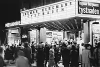 In the United States, The Silence was distributed by Janus Films, and after edits ran 10 minutes shorter than the Swedish version.[17] The film opened in New York City on 3 February 1964 in two theatres, one of which was known for featuring films with nudity.[26] On 19 August 2003, The Criterion Collection released the film on DVD in Region 1, in a box-set with Bergman's films Through a Glass Darkly and Winter Light and Vilgot Sjöman's documentary Ingmar Bergman Makes a Movie.[27] In 2018, Criterion announced a Blu-ray release in Region A for 20 November 2018, along with 38 other Bergman films, in the set Ingmar Bergman's Cinema.[28]