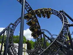 The Smiler is a steel roller coaster located at Alton Towers in Staffordshire, United Kingdom. It opened in 2013 as the first Infinity Coaster model from Gerstlauer and was built in the X-Sector area of the park. The Smiler features 14 inversions, which is a world record for most inversions on a roller coaster.[3]