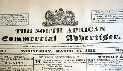 3. "The South African Commercial Advertiser 1824-1856". www.eggsa.org. Archived from the original on 2013-01-17.