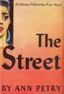 The Street is a novel published in 1946 by African-American writer Ann Petry. Set in World War II era Harlem, it centers on the life of Lutie Johnson. Petry's novel is a commentary on the social injustices that confronted her character, Lutie Johnson, as a single black mother during this period. Lutie is confronted by racism, sexism, and classism on a daily basis in her pursuit of the American dream for herself and her son, Bub. Lutie fully subscribes to the belief that if she follows the adages of Benjamin Franklin by working hard and saving wisely, she will be able to achieve the dream of being financially independent and move from the tenement in which she lives on 116th Street. It is Junto, through his manipulations to possess Lutie sexually, who ultimately leads Lutie to murder Junto's henchman, Boots.[1][2]