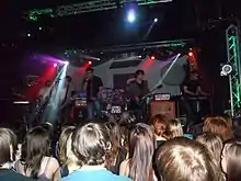 ![]() Super Happy Fun Club soundchecking at King Tut's Wah Wah Hut during the Madina Lake Farewell Celebration and Final UK Tour, 10-10-2013 | |